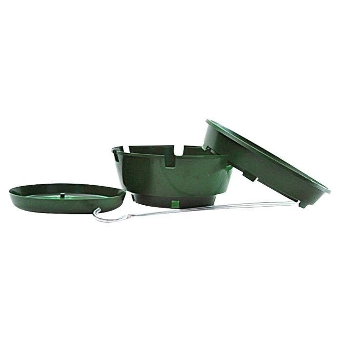 Belden Plastics manufactures their Hanging Gardenbaskets using 100% recycled materials. These injection-molded green plastic containers measure 10 inches in diameter and 5-1/2 inches in height. Each case contains 25 baskets and 25 3-strand wire hangers.