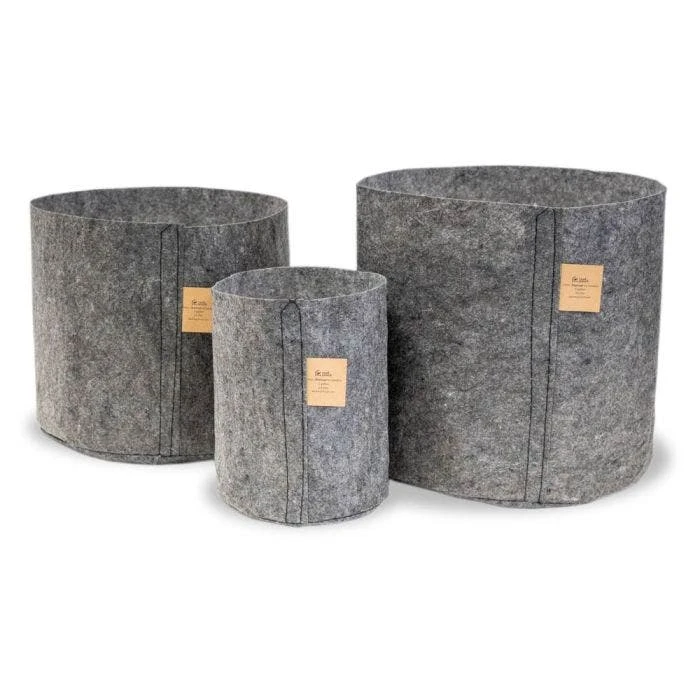 Do you want a nursery pot that is cheaper than the standard plastic pot – as low as 35 cents per pot? Do you worry about the environmental impact of those plastic pots? If you answered yes to either of these questions, Root Pouches are the perfect choice! Every year, millions of plastic pots find their way into landfills. The petroleum and other fossil fuels used to create these pots, along with their inability to break down, result in a negative impact on our environment. Root Pouch uses its award-winning technology to convert a mixture of recycled natural fibers and recycled bottles into their patented grow bags. These materials, otherwise destined for our landfills, see a second life as a lightweight, breathable geotextile. Root Pouch then uses this textile to create plant pots that degrade (break down) once you plant them in the ground. These fabric pots are wonderful for plants. They are breathable, so roots stay cool in summer and do not suffocate from over-watering. The fabric material allows for water permeation, so there is sufficient drainage without the need for holes in the pot. This product is perfect for in-ground as well as above ground growing. The uses are endless! Since they are made from flexible fabric, they do not chip or break like standard pots. You no longer have to clean up broken shards as you do with clay pots.