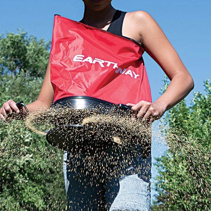 This convenient over-the-shoulder hand crank spreader has a unique oscillation shut off plate that prevents clumping and aids in flow control. Nylon bag with zippered top resists corrosion from fertilizers. Features convenient spring action flow setting and an enclosed gear box. High RPM ensures smooth wide broadcast spreading. 20 lb capacity.