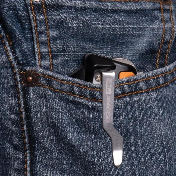 The FiskarsPro Folding Utility Knife has deep grooves and contours. This ergonomic design accommodates multiple grips, making this knife perfect for any task. Its slim profile and attached belt clip make it easy to take with you on the go.