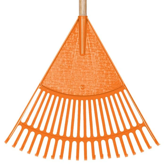 Leonard 18in Poly Rake includes high-quality ribbed poly tine construction, which increases the stiffness and strength of each tine, ensuring that you get more leaves with every stroke. The bright orange color of the rake helps your crew find all of them at the end of a long day. The partially ribbed tine construction of the rake maintains tine shape and resists cracking, even in cold weather. It makes gardening and landscaping easy and efficient.
