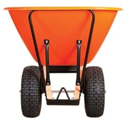 We design our wheelbarrows with you in mind! We loaded these wheelbarrows with features: Design: The low-profile design provides increased stability, even with heavy loads on rutted surfaces. Wide carriage bolt heads and heavy-duty undercarriage offer enough support to handle loads weighing up to 500-pounds. The tough, 6-cubic-foot capacity poly tub provides many years of reliable service! Steel Handles: We equipped this wheelbarrow with our NEW steel handles. We make these handles from 18-gauge galvanized steel tubes. We apply a black powder coat to the outside for added durability. We finish by capping them with injection-molded grips for increased comfort. For more information, click HERE. Welded tray support: This wheelbarrow features our new and improved welded steel tray support. This welded, heavy-gauge steel support improves the strength and durability of this product. Please click HERE for more information. We offer these wheelbarrows with multiple tire options. Choose the traditional option and go with pneumatic tires. You can also go flat-free, which gives you the peace of mind of never worrying about tires ever going flat! Choose your wheel type and tray color below. We cover this product with a lifetime warranty. See below for details.