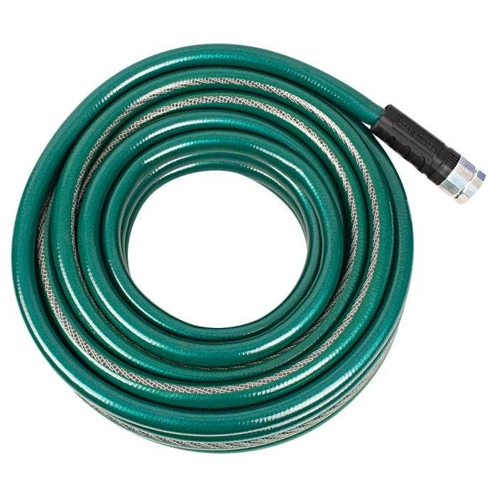 The NeverKink Heavy Duty Reel Hose is guaranteed not to kink or tangle. The high strength, lead-free aluminum couplings are leak proof and crush resistant. It has a new design rigid sleeve and micro shield anti-microbial protection. It is also made in the USA.
