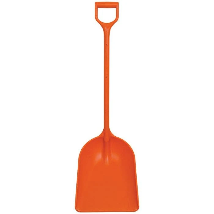 The Leonard Poly Scoop Shovel features a durable high-impact one-piece poly construction. A deeper 14-inch by 17-3/4-inch head gives you a 20% increase in capacity over our original scoop. The extended 30-inch D-grip handle features a fiberglass core. This core increases the overall strength and rigidity of the handle.