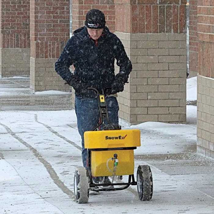 A powder-coated steel frame offers heavy-duty support. Use the SnowEx 12-Gallon Walk-Behind Liquid Sprayer to apply your eco-friendly brines solutions. The heavy-duty wand gets into those hard to reach spots. The boom-less front nozzle makes short work of long walkways. SnowEx designed this sprayer to hold up to even the harshest winters.