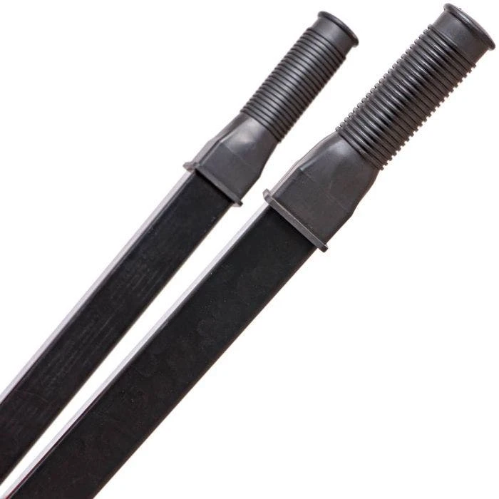 We make these wheelbarrow handles from 18-gauge galvanized steel tubes. We apply a black powder coat to the outside for added durability. We finish by capping them with injection-molded grips for increased comfort. Sold in pairs.