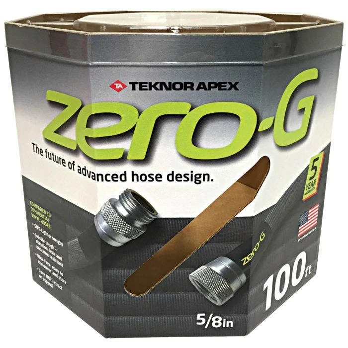 The zero-G Hose is the future of advanced hose design. 50% lighter weight than a standard hose. Tru-Flex pliable inner core prevents kinking. Small, compact and easy to store. High burst strength over 600 PSI. Same flow rate as 5/8-in conventional hose. Ergonomic, crush proof couplings. Engineered high density G-Force woven fibers offer durable, long lasting wear equal to commercial grade hoses. Glides smoothly over surfaces without marring or snagging. Drinking water safe, lead free, and Prop 65 compliant. Cold weather flexibility down to 35 degrees. Does not retract or expand, but it also won’t blow up! Assembled in the USA. Brand new design, limited quantities available.
